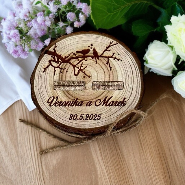 Personalizowana drewniana podkładka na obrączki to elegancki i symboliczny element ceremonii ślubnej. Wykonana z wysokiej jakości drewna, zachwyca prostotą, ciepłem materiału oraz starannie wykonanym grawerem. To idealne miejsce na Wasze obrączki podczas ceremonii, które podkreśli wyjątkowość tej chwili.