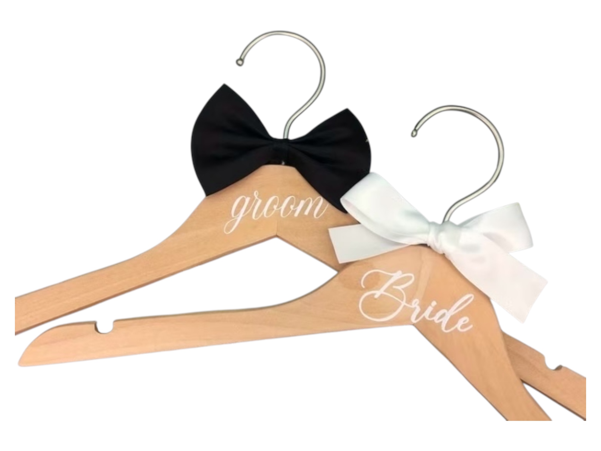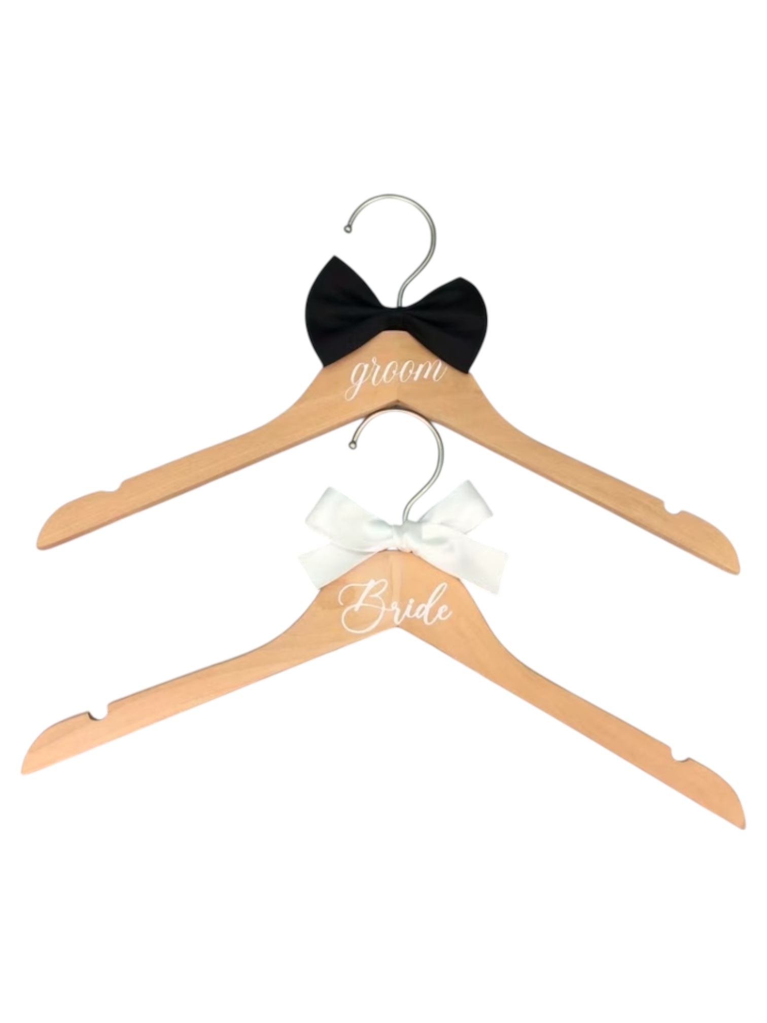 Dodaj wyjątkowy detal do swojego ślubu i zadbaj o każdy szczegół z naszymi wieszakami „Bride & Groom”.
