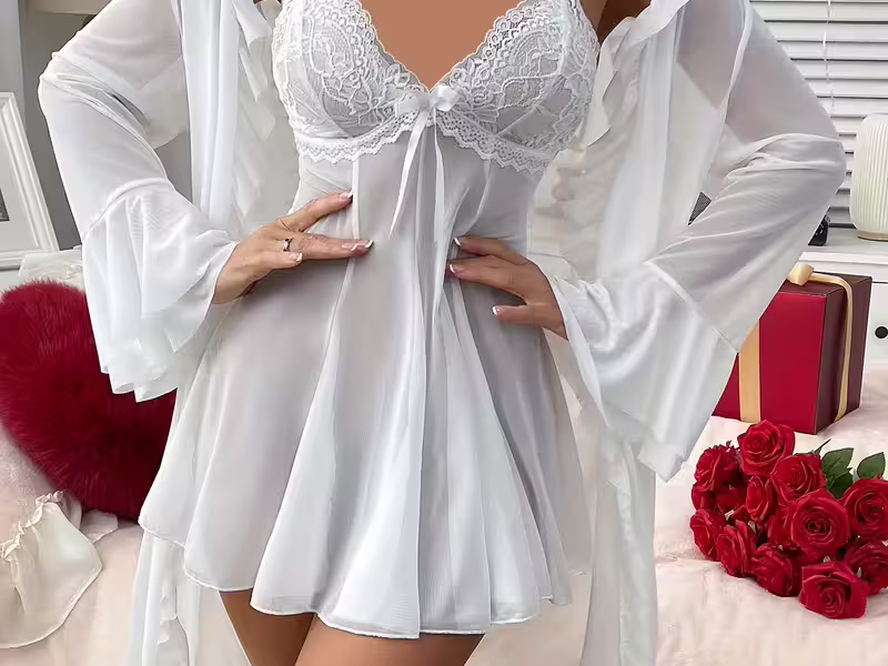 - komplet: koszula nocna + przezroczysty szlafroczek